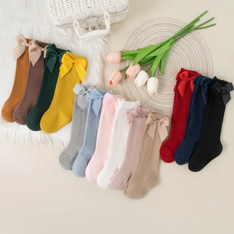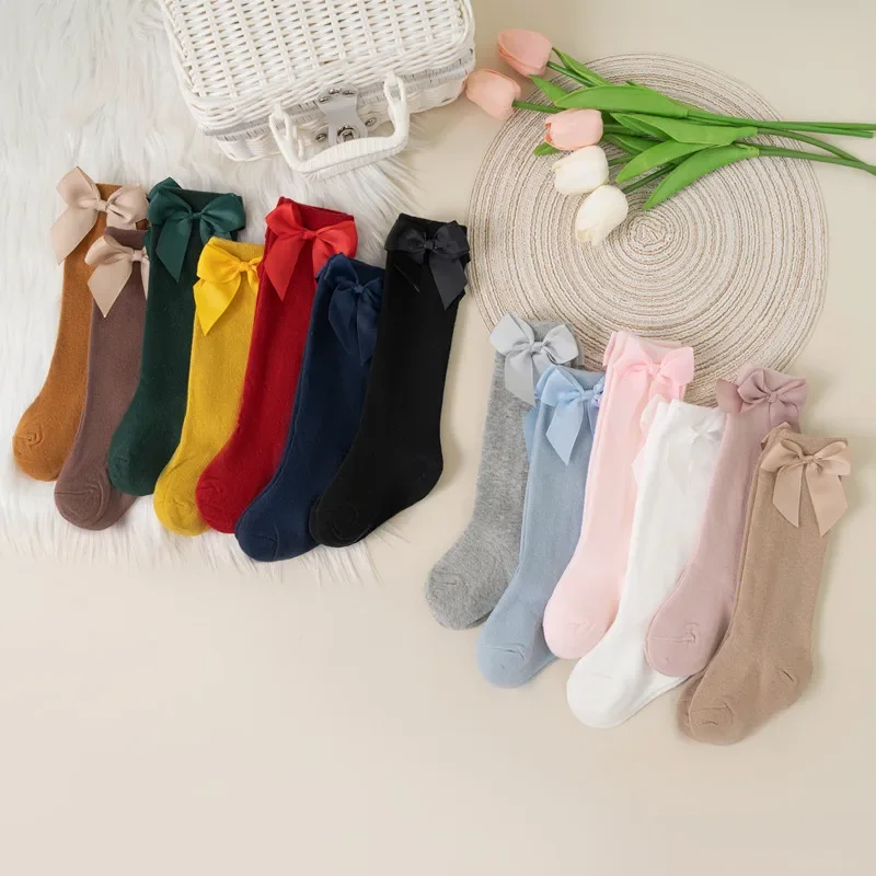 Welcome to Little Cuddle Crate, These adorable knee-high baby socks are perfect for autumn and winter wear. Made from soft cotton, they are gentle on delicate baby and toddler skin. The Spanish-style design features a big bow, adding a charming and fashionable touch. Ideal for girls, these long socks provide warmth and coverage for tiny legs. The stretchy fabric ensures a snug and comfortable fit without slipping. Suitable for indoor use, casual wear, or special occasions. Lightweight yet warm, keeping little feet cozy throughout the day. Easy to wash and durable for regular use. Perfect for pairing with dresses, skirts, or casual outfits. These stylish and practical socks are a must-have addition to any child’s wardrobe.